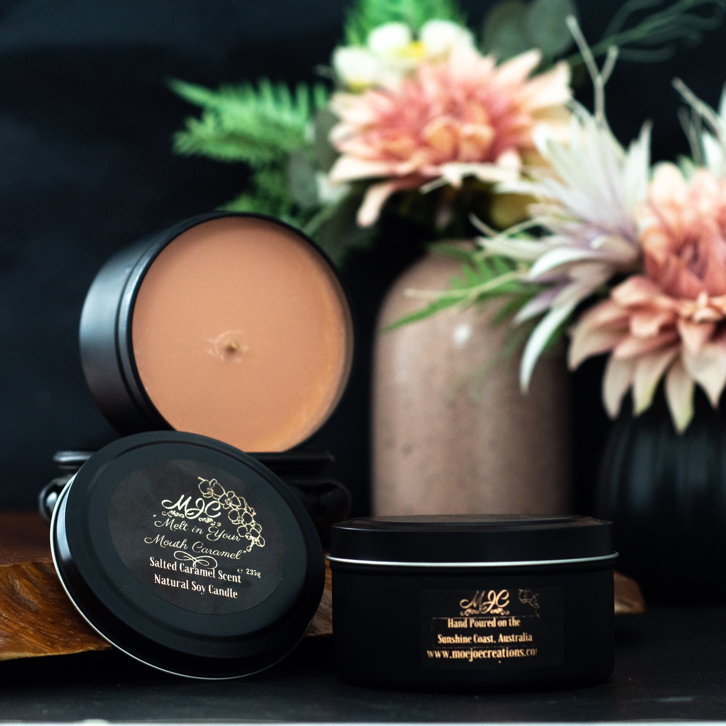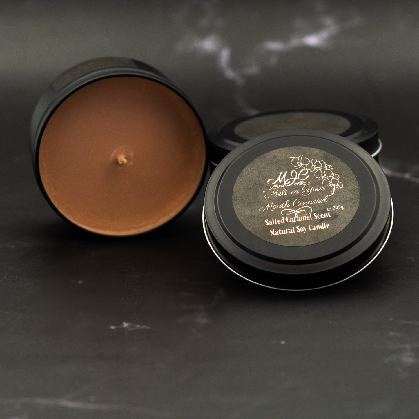 Salted Caramel Fragrance Soy Wax Travel Tin Candle Available in Four Sizes